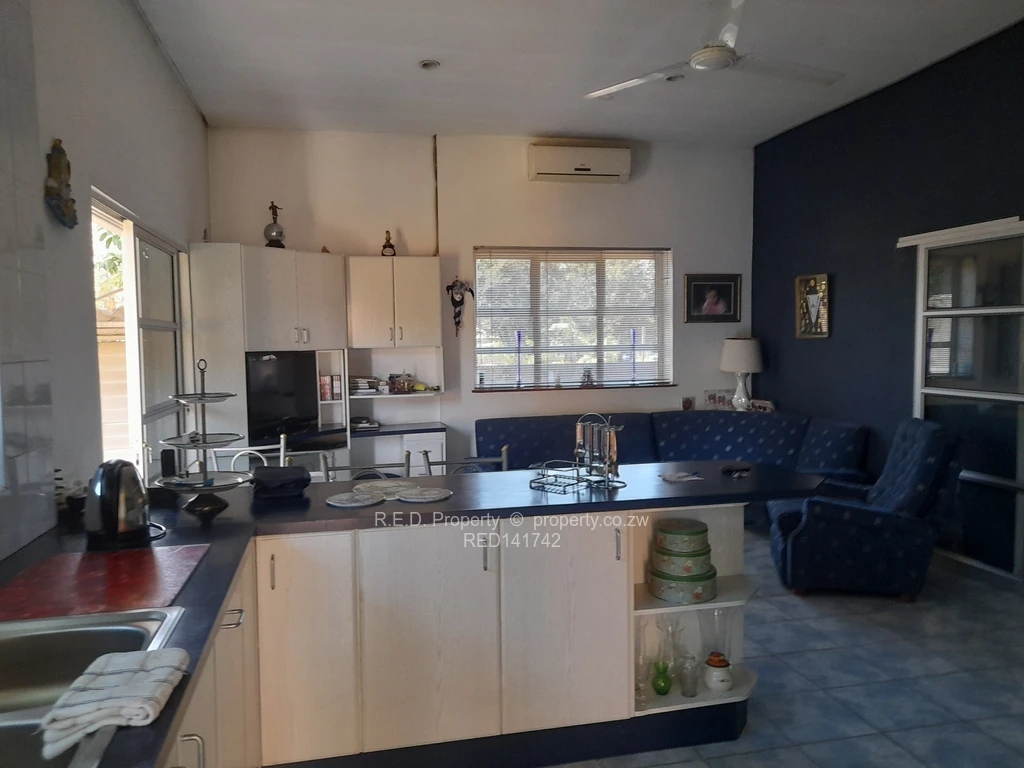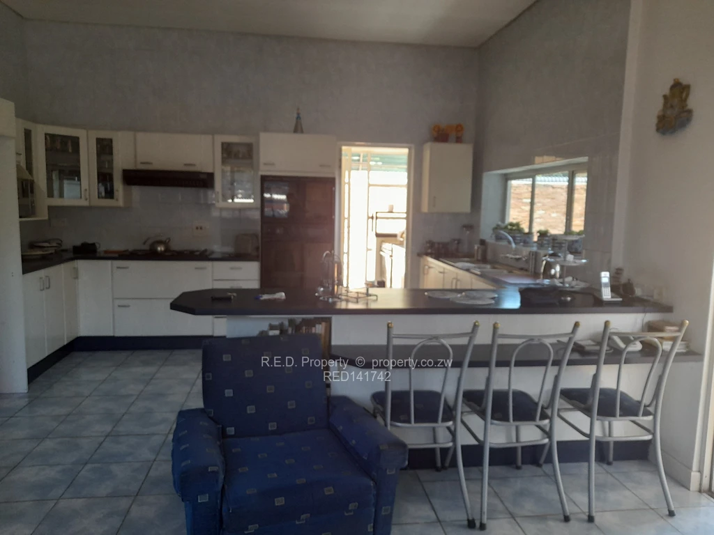 R.E.D Property presents a family home eligible for commercial rights, occupying approximately 800 square meters. The estate includes a cottage, staff quarters, double carports, a swimming pool, an overhead covered terrace, and a verdant garden with a paved driveway, complemented by a prolific borehole equipped with a pump and motor. The main residence features two spacious bedrooms, two bathrooms, an open-plan living and dining area with a bar, and an additional lounge that merges seamlessly into a well-appointed kitchen complete with a scullery, pantry, and double oven with hob. Security is paramount, evidenced by an alarm system with sensors and a siren installed around the perimeter of the garden and house. The property is enclosed by walls and an electric gate. For more details, contact us today.